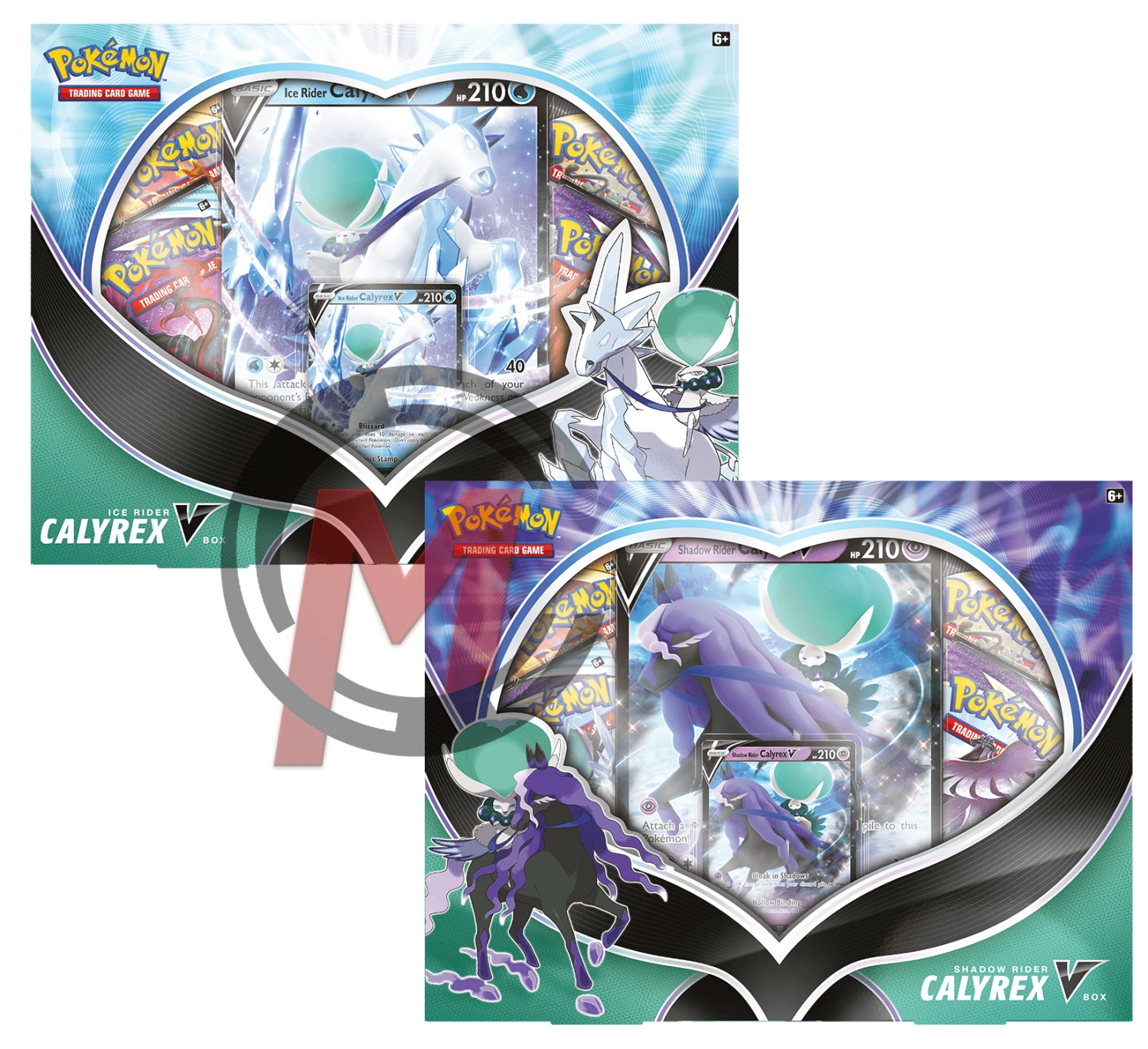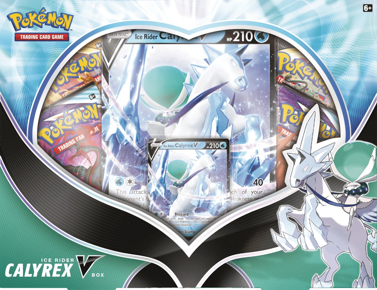 The Pokémon TCG: Ice Rider or Shadow Rider Calyrex V Box includes: