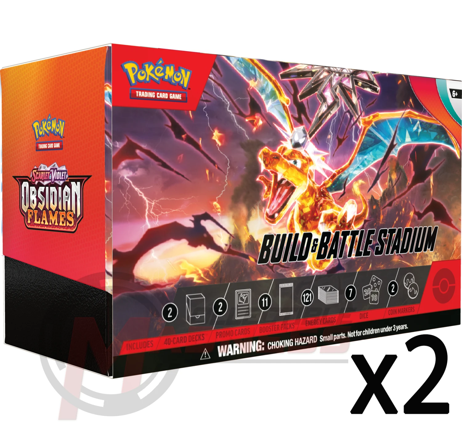 Build two decks with a friend—and then play right away! This Pokémon TCG: Scarlet & Violet—Obsidian Flames Build & Battle Stadium contains a massive set of cards, including two Build & Battle Boxes. Each Build & Battle Box contains four booster packs and a 40-card deck that includes an exclusive foil card. You can play these decks right out of the box, or enhance them with cards from the booster packs. Get ready to face your opponents in the Build & Battle Stadium!