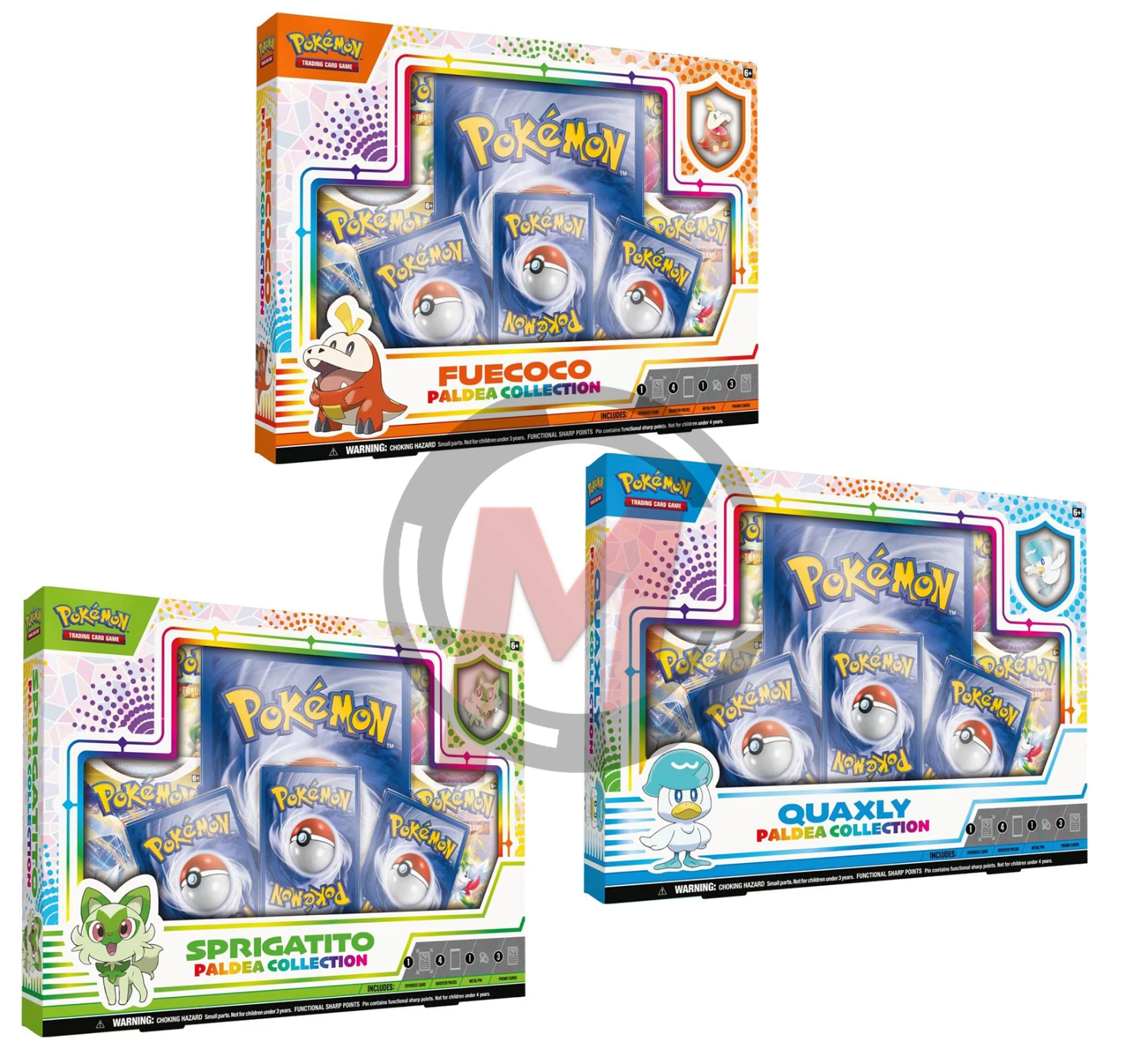 • 1 collector’s pin featuring Sprigatito, Fuecoco, or Quaxly