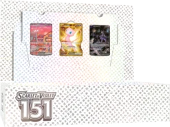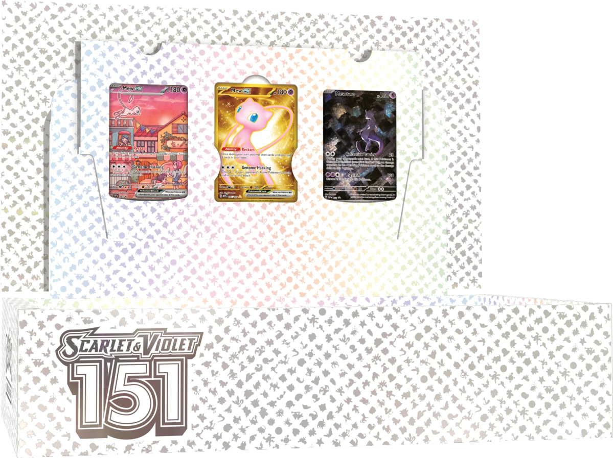 The Mythical Pokémon Mew holds many secrets of the Pokémon world, and usually only the luckiest of Trainers encounter it. But now you can add it to your own Pokédex along with even more Kanto Pokémon inside a bounty of booster packs from the Scarlet & Violet—151 expansion! Mew ex appears here as both playable and collectible metal cards, and you’ll also find a beautifully illustrated promo card featuring Mewtwo, a durable playmat and deck box, and more.