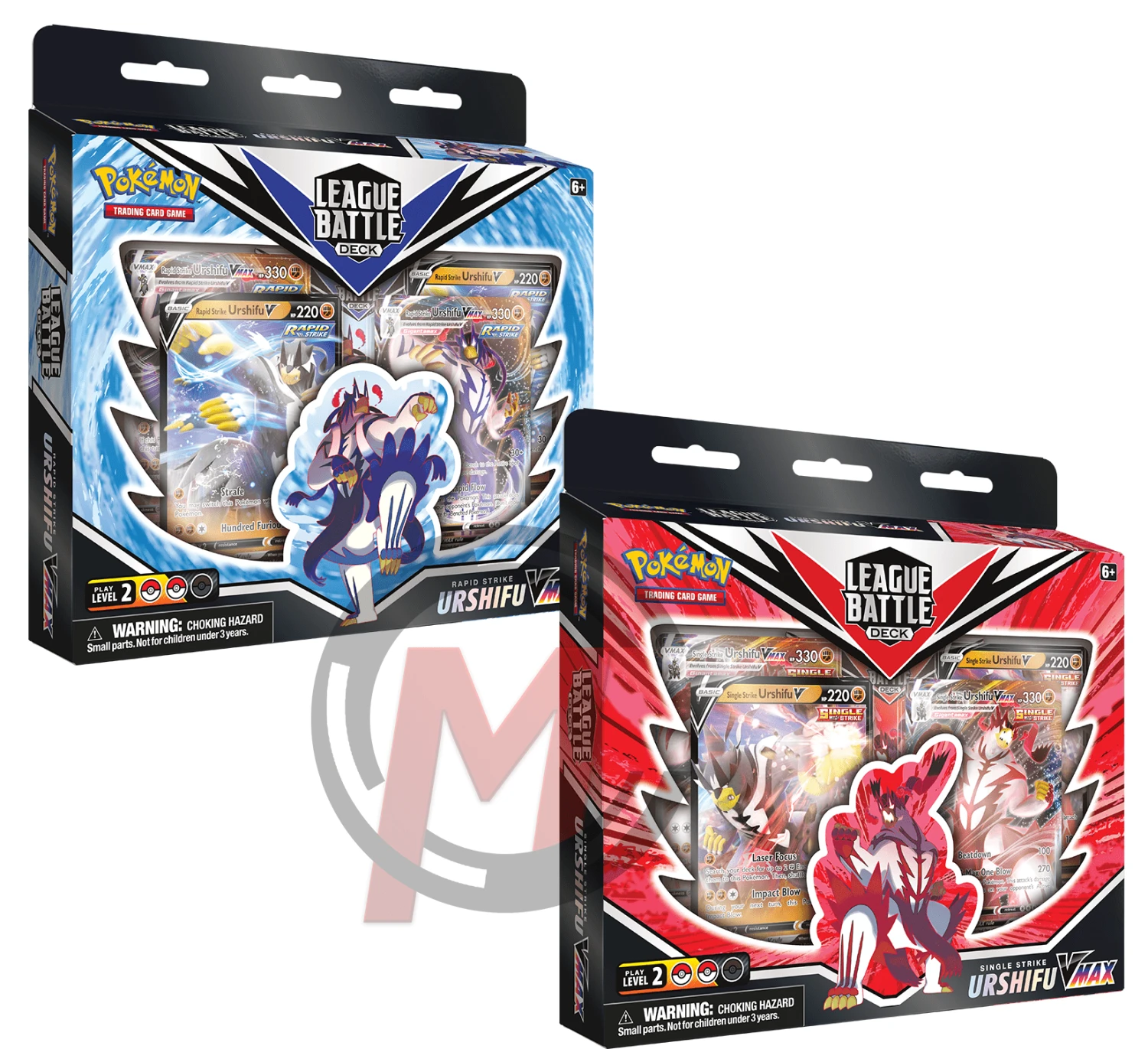 Choose your moment, and strike with raw power! Or strike a thousand times—each time one step closer to victory! Single Strike Urshifu VMAX or Rapid Strike Urshifu VMAX is yours in a powerful, League-ready deck for skilled Trainers and Pokémon TCG players. With a slew of cards including premium foil cards, sought-after power cards, and a well-tuned set of Pokémon and Trainer cards, these League Battle Decks do more than feature one of the most popular Pokémon of the Galar region: they put together all the elements to support you in your next match against friends and neighbors, in person or online! Ready to play and loaded with the potent combos of either Single Strike Urshifu VMAX or Rapid Strike Urshifu VMAX!